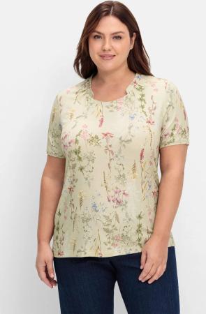 Große Größen: Tunika mit Kurzarm und verlängertem Rückenteil, mint gemustert, Gr.40-54