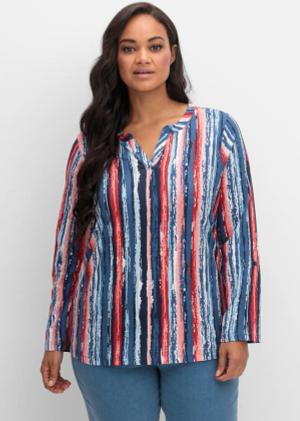 Große Größen: Streifenshirt im Batik-Look, mit Krempelärmeln, marine gemustert, Gr.40-56