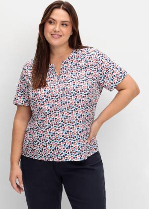 Große Größen: Tunika mit Minimalprint und kurzen Ärmeln, weiß gemustert, Gr.40-56