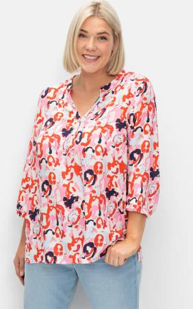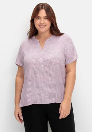 Große Größen: Bedruckte Tunika mit Blusenkragen, aus Crêpe, rosé gemustert, Gr.40-56