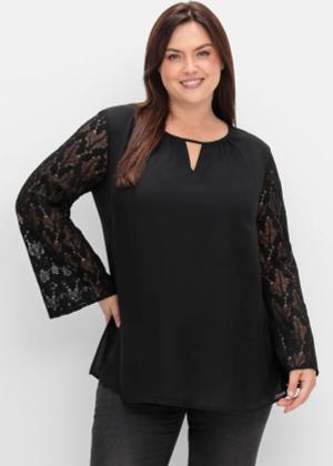 Große Größen: Tunika im Lagenlook, mit Spitzenärmeln, schwarz, Gr.40-60