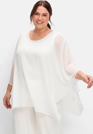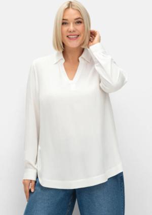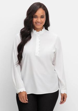 Große Größen: Tunika mit Stehkragen und gewellten Kanten, weiß, Gr.40-56