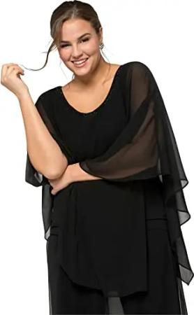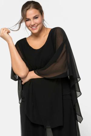 Große Größen: Lange Chiffontunika in Lagenoptik, schwarz, Gr.40-60