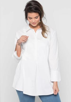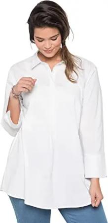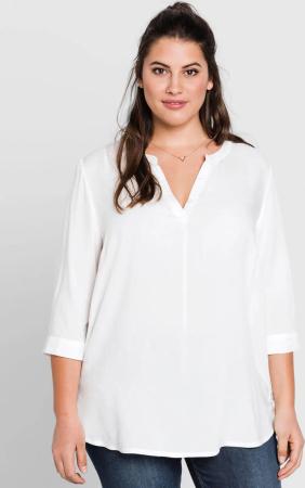 Große Größen: Tunika mit 3/4-Arm und gerundetem Saum, weiß, Gr.40-60