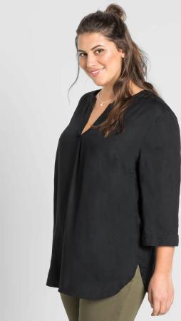 Große Größen: Tunika mit 3/4-Arm und gerundetem Saum, schwarz, Gr.40-60