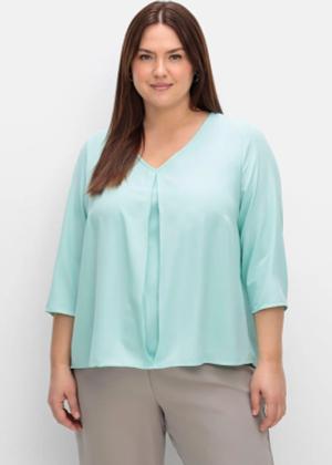 Große Größen: Tunika mit 3/4-Arm und Plisseefalten hinten, mint, Gr.40-56