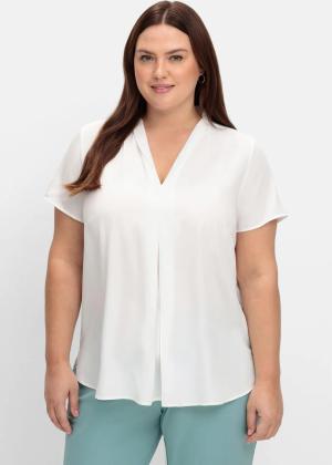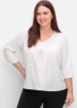 Große Größen: Tunika mit V-Ausschnitt und Faltendetail vorn, weiß, Gr.40-56