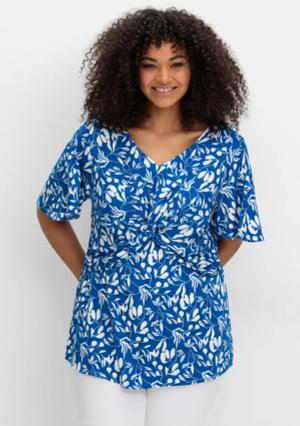 Große Größen: Tunika mit Flügelärmeln und Knotendetail, kobalt gemustert, Gr.40-58