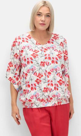 Große Größen: Tunika mit Blumendruck und 3/4-Ärmeln, ecru gemustert, Gr.40-54
