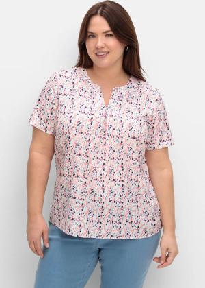 Große Größen: Tunika mit Kurzarm und verlängertem Rückenteil, rosé gemustert, Gr.40-54