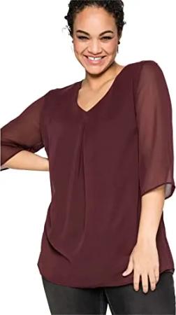 Große Größen: Tunika mit 3/4-Arm und gerundetem Saum, weinrot, Gr.40-60