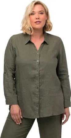 Damen große Größen Übergrößen Plus Size Bluse, Leinen, offener Kragen, Langarm lodengrün 42+ 794882190-42+