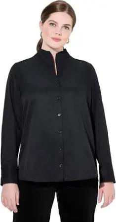 Damen große Größen Übergrößen Plus Size Bluse, Oxford-Gewebe, Kelchkragen, Langarm schwarz 50+ 808495100-50+