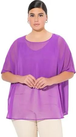 Damen große Größen Übergrößen Plus Size Chiffonbluse, Oversized, Rundhals, Halbarm lila 50-56 825815824-2+