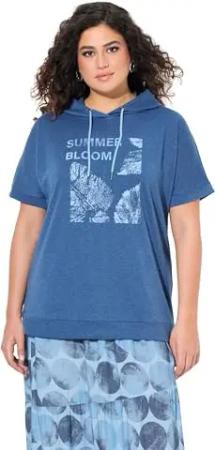 Damen große Größen Übergrößen Plus Size Hoodie, Sommermotiv, Oversized, Kapuze, Halbarm atlantikblau 46+ 837889722-46+
