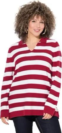 Damen große Größen Übergrößen Plus Size Pullover, Streifen, Polokragen
