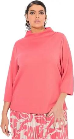 Damen große Größen Übergrößen Plus Size Sweatshirt, Struktur, Stehkragen, Zierfalten, 3/4-Arm dunkel Koralle 62+ 833368515-62+