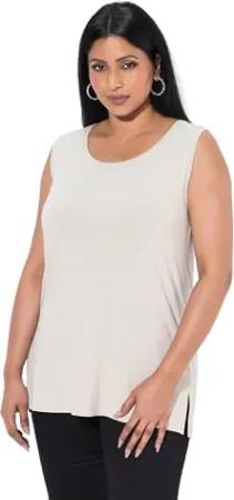 Damen, große Größen, Top, Zierfalten, A-Linie, Rundhals, ärmellos, Modal