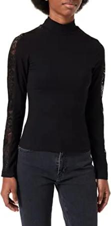 Damen T-Shirt Ladies Cropped Lace Longsleeve Black 4XL