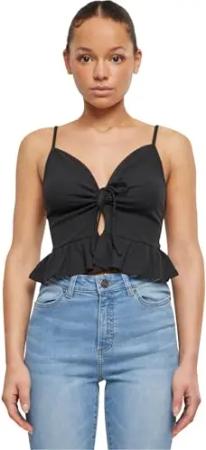 Damen Top Ladies Waffle Pique Ruffle Top, Bandeau mit Spaghetti-Trägern für Frauen, Größen XS - 5XL