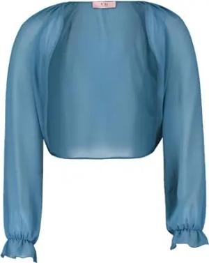 Damen Bolero-Jacke mit gekräuseltem Ausschnitt 34, Shiny Bluestone