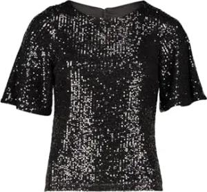 Damen Pailletten-Bluse mit Flügelärmeln 40, Schwarz