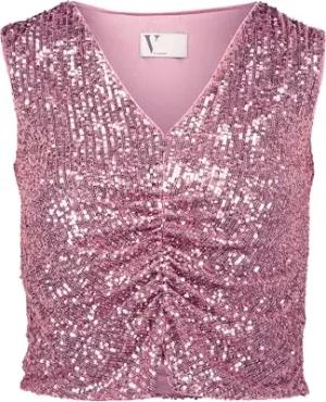 Damen Pailletten-Top mit V-Ausschnitt 42, Peony Blush