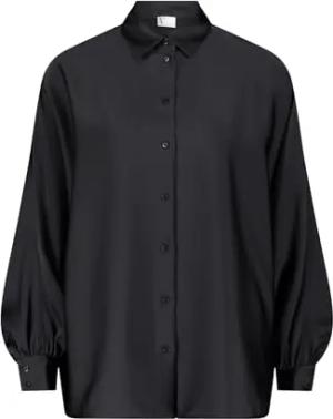 Damen Satin-Bluse mit Kragen 34, Schwarz