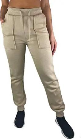 Damen Jogginghose Sweathose Hose Trainingshose Sporthose Lounge WEAR Joggers Fitnesshose Freizeithose Sweatpants Damenhose Designer Blogger XXS-L 32-40 (Beige, Numeric_34)