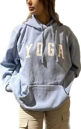 Damen Mädchen Oversized Hoodie Colloge Kapuzenpullover Lounge Sweatshirt Bedruckt Yoga Freizeit Sport Langarmshirt Oberteil Pulli (Skyblau)
