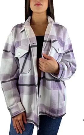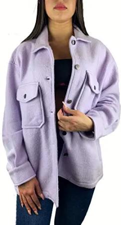 Damen Oversized Hemd HEMDJACKE EINFARBIG HOLZFÄLLERHEMD LANGARMHEND MIT Brusttaschen HEMDBLUSE Bluse Shirt Designer Blogger NEU S-L 36-42 (S, Lila)