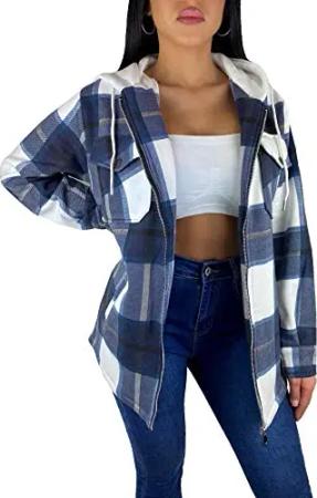 Damen Oversized HOLZFÄLLERHEMD HEMDJACKE MIT Kapuze KARO Hemd KARIERT LANGARMHEND Brusttaschen HEMDBLUSE Bluse Shirt Designer Fashion Blogger NEU XS-L 36-44 (XS, M-6)