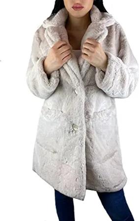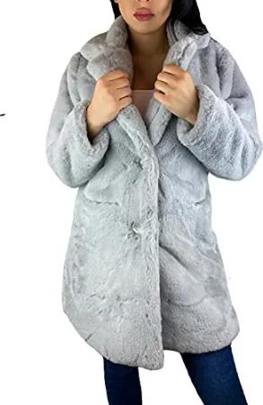 DAMEN PARKA WINTER LANG MANTEL AUS FELLIMMITAT KUNSTFELL FLAUSCHIG COAT PELZIMITAT JACKE WARM BLOGGER NEU S M L 36 38 40 42 (S/M (36-38), Grau)