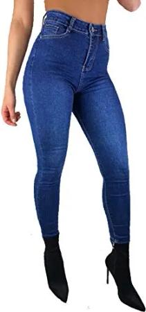 Damen Skinny Jeans HIGH Waist RÖHRENJEANS Denim Elegante Business DAMENJEANS Hose Stretch Blogger Freizeithose Damenhose MIT Tasche Used Look 34-42 XS-XL (34, Blau-772)