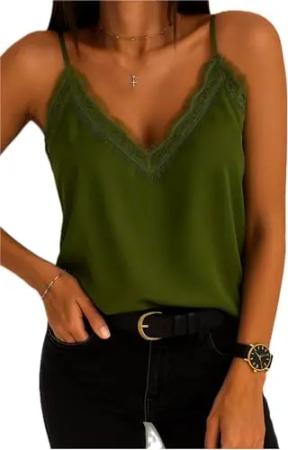 Damen Trägertop mit Spitze Sommer Spaghetti Top Trägershirt Locker viele Farben (DE/NL/SE/PL, Alphanumerisch, Einheitsgröße, Einheitsgröße, Regular, Kurz, Khaki)