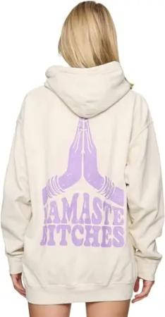 Oversized Namaste Hoodie Kapuzenpullover Sweatshirt (DE/NL/SE/PL, Alphanumerisch, Einheitsgröße, Regular, Regular, BEIGE)