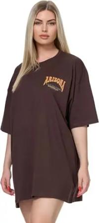 Oversized Print T-Shirt lang Tee Arizona Sommer Bedruckt Oberteil Loungewear Streetwear Blogger Neu (Baumwolle, Braun)