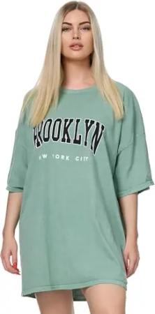 Oversized Print T-Shirt lang Tee Brooklyn Sommer Bedruckt Oberteil Loungewear Streetwear Blogger Neu (Baumwolle, Mint)