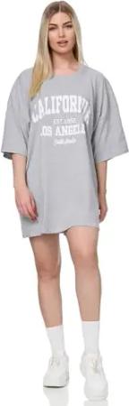 Oversized Print T-Shirt lang Tee California LA Sommer Bedruckt Oberteil Loungewear Streetwear Blogger Neu (Baumwolle, Hellgrau)