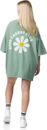 Oversized Print T-Shirt lang Tee Good Energy Club Sommer Bedruckt Oberteil Loungewear Blogger Neu (Baumwolle, Mint)