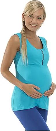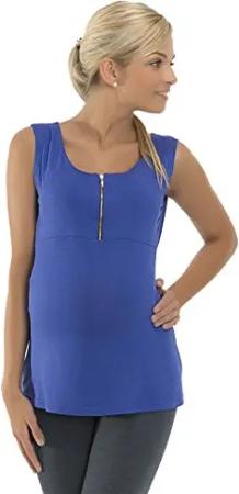 Umstand Shirt Ärmellos Top Tank Tanktop Bauch Bluse Reißverschluss Stretch blau S/M