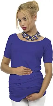 Umstand Shirt Kurzarm T-Shirt Bluse Tunika Top Bauch Stretch Sonia Schwanger blau S/M