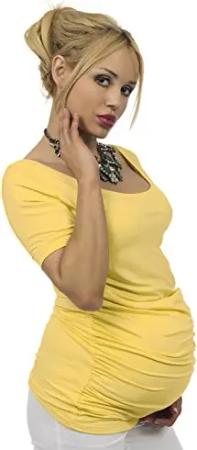 Umstand Shirt Kurzarm T-Shirt Bluse Tunika Top Bauch Stretch Sonia Schwanger gelb S/M