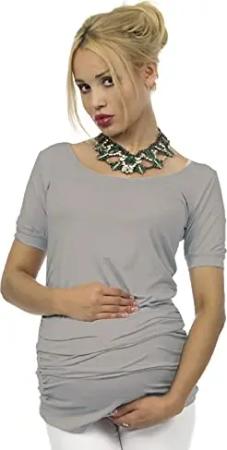 Umstand Shirt Kurzarm T-Shirt Bluse Tunika Top Bauch Stretch Sonia Schwanger grau XXL/XXXL