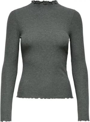 Damen Onlemma L/S Noos JRS Comfort Fit High Neck Top Mit Femininen Rüschen, Castor Gray, L