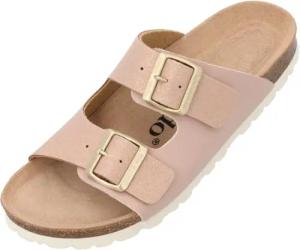 Pantoletten Damen Korfu Duo – bequeme Sandalen Made in Spain - Hausschuhe mit Kork-Fußbett - modische Sommerschuhe Rose UK3,5 - EU36