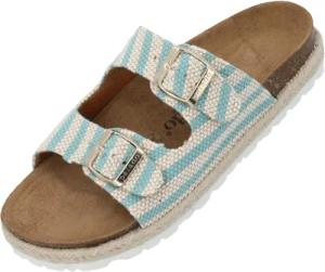 Pantoletten Damen Korfu Marina – elegante Sandalen Made in Spain - bequeme Hausschuhe mit Kork-Fußbett - modische Sommerschuhe Türkis UK9 - EU42