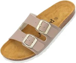 Pantoletten Damen Kos Avelina - elegante Sandalen Made in Spain - bequeme Hausschuhe mit Kork-Fußbett - modische Sommerschuhe Taupe UK4,5 - EU37