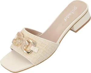 Sandaletten Damen Darie - modische Pantoletten - elegante Sommerschuhe - bequeme Sandalen mit edler Metallverzierung Beige UK3,5 - EU36