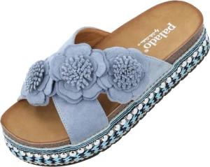 Pantoletten Damen Malta EGS Caro by Sila Sahin – elegante Sandalen Made in Spain - bequeme Hausschuhe mit Kork-Fußbett - modische Sommerschuhe Blau UK9,5 - EU43